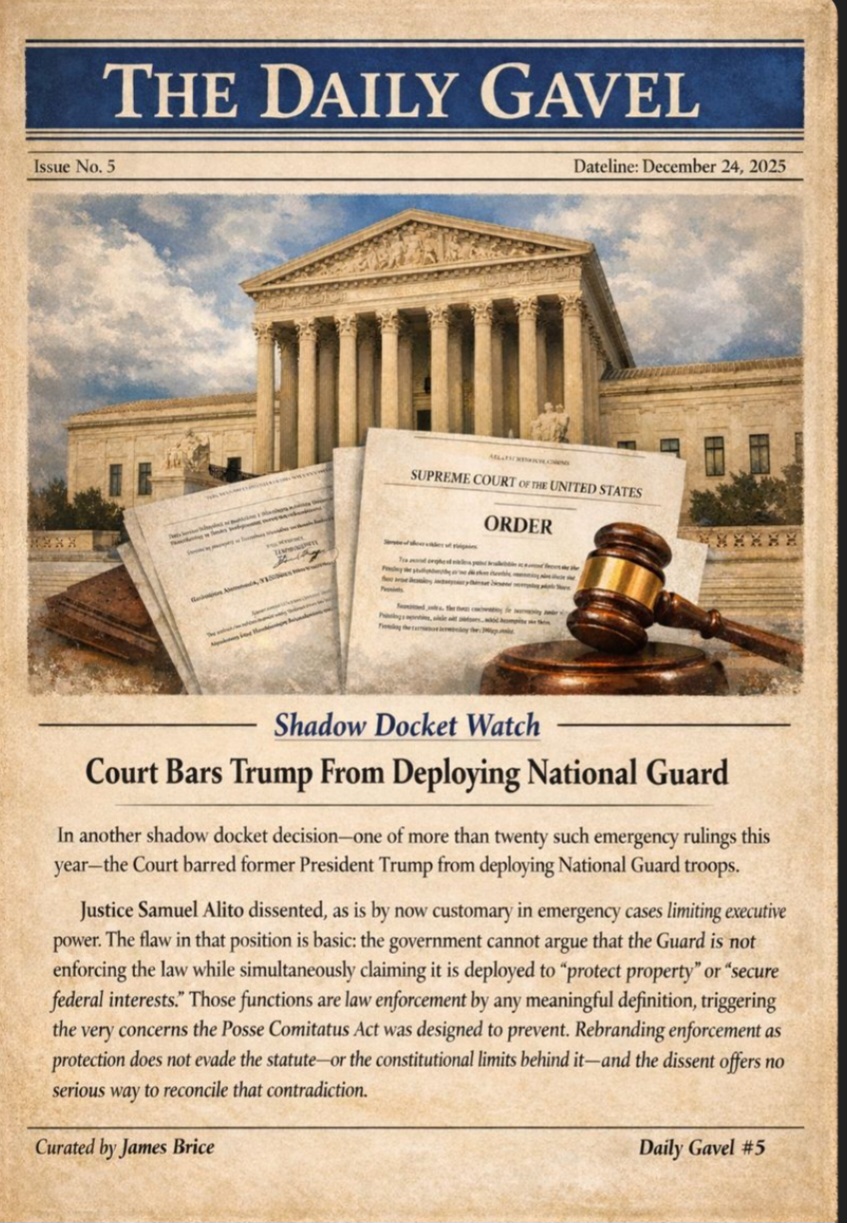 Issue #5 - Shadow Docket Watch: Court Bars Trump from Deploying National Guard