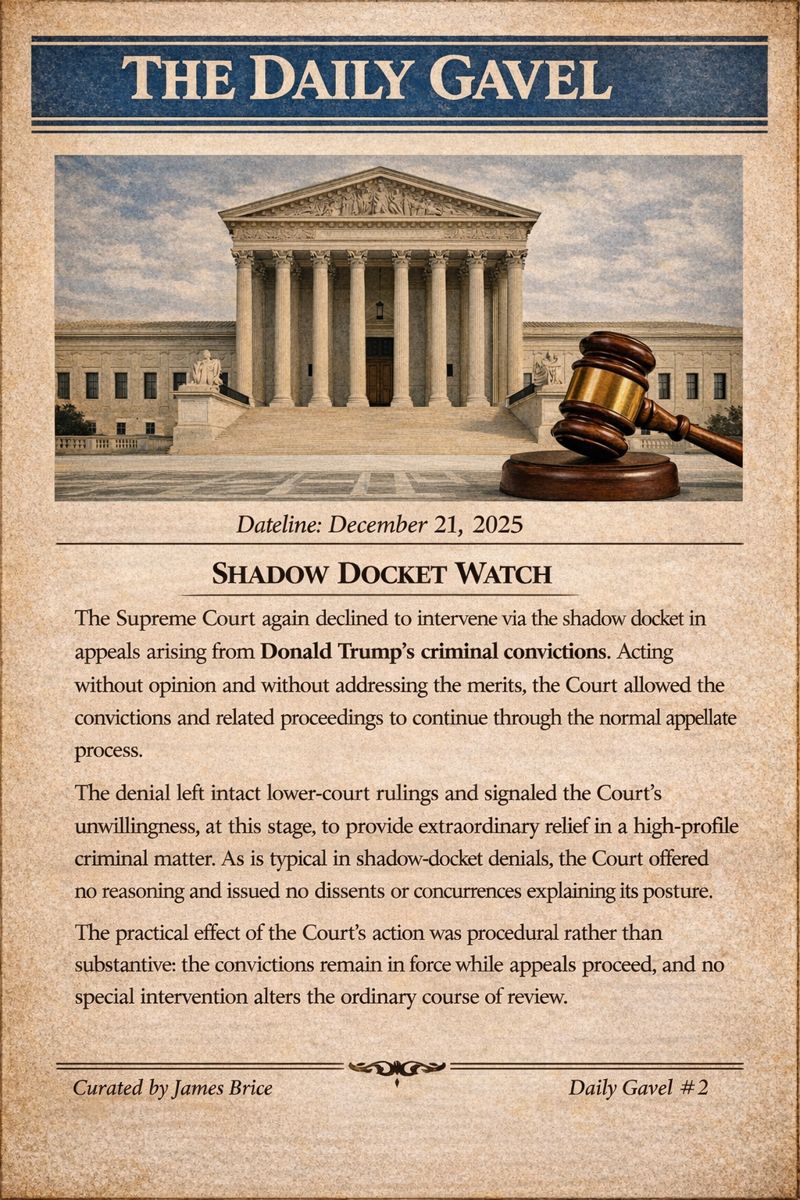 Issue #2 - Shadow Docket Watch: Trump’s Convictions Allowed to Stand