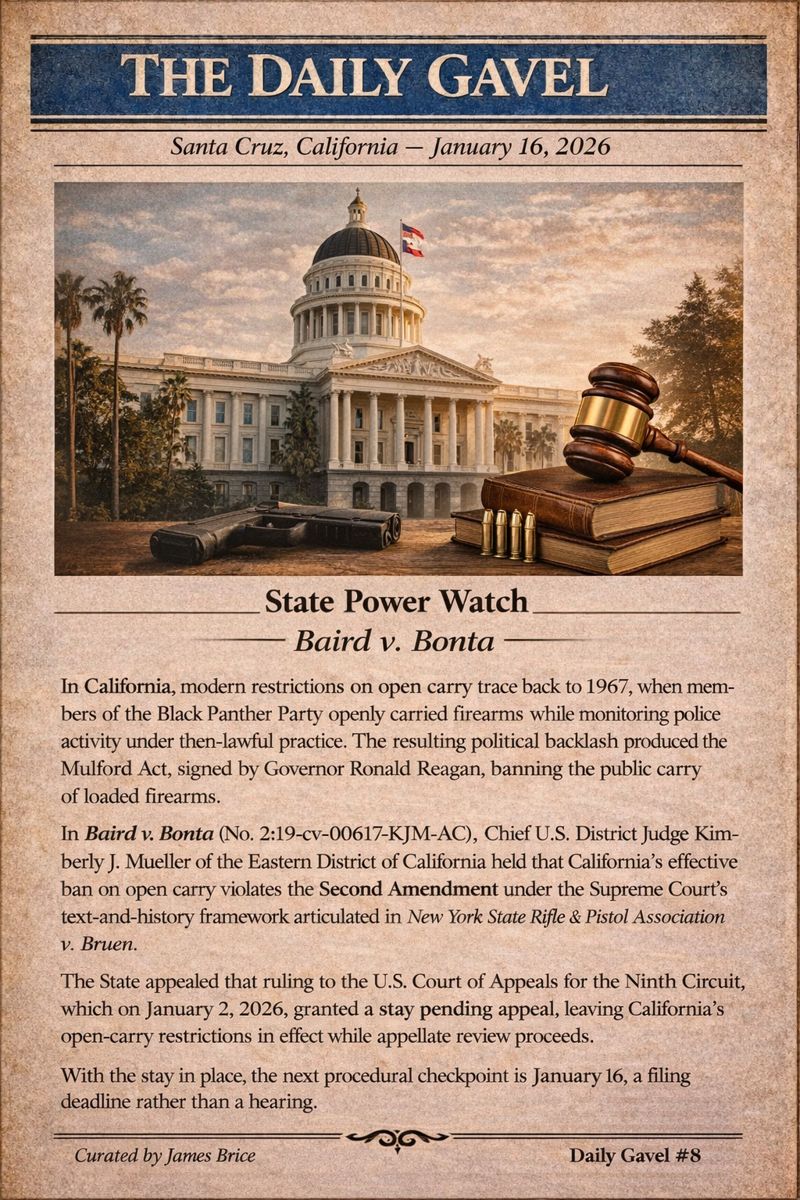 Issue #8 - State Power Watch: Baird v Bonta (open carry)